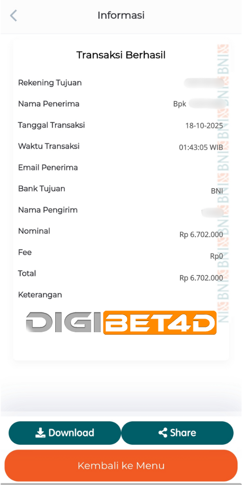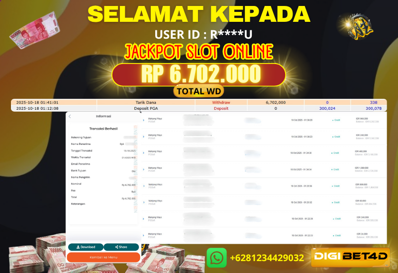 Masih ragu dengan situs kami ? Silahkan lihat saja bukti kemenangan Member Setia DIGIBET4D sebesar Rp 6.702.000,- Tidak perlu khawatir, Karena Situs DIGIBET4D kemenangan berapapun akan dibayarkan kepada pemenang.